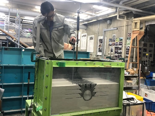 Our research extends beyond laboratory work, encompassing field surveys to identify real-world issues. To address these challenges, we employ a variety of methods—including physical modeling and numerical analysis— to develop effective solutions. Many of our research projects are conducted in collaboration with national research institutes and private companies. One of the distinctive strengths of our laboratory is access to well-equipped experimental facilities, such as a centrifugal model testing device.