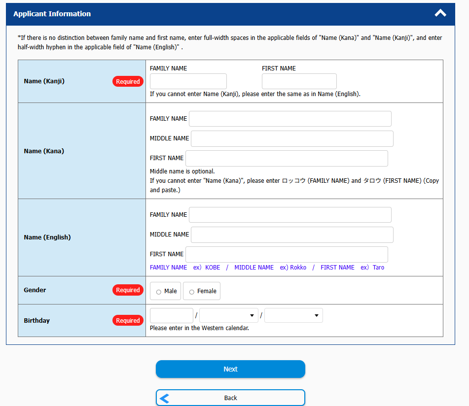 Enter the information in [Applicant Information] and press the [Next] button.