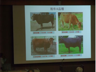 休憩をはさんで、本多健助教に、「家畜の遺伝的多様性 ~和牛(黒毛和種)のケース~」、片山寛則講師に、「東北地方に自生する野生梨"イワテヤマナシ"の評価・利用、保全をめざして」と題して講演をいただきました。特に、片山講師の課題は、神戸大学震災復興支援・災害科学研究推進室における東北震災の支援プログラムにも採択されたタイムリーな、イワテヤマナシの再有効利用に関する重要な研究報告でした。