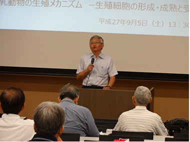 今回の公開講座は、「哺乳動物の生殖メカニズム」と題して、三名の先生方に講義いただき、本研究科が生殖細胞の形成・成熟ならびに受精に関する研究にどのように取り組んでいるかを理解していただくことを目的に実施しました。