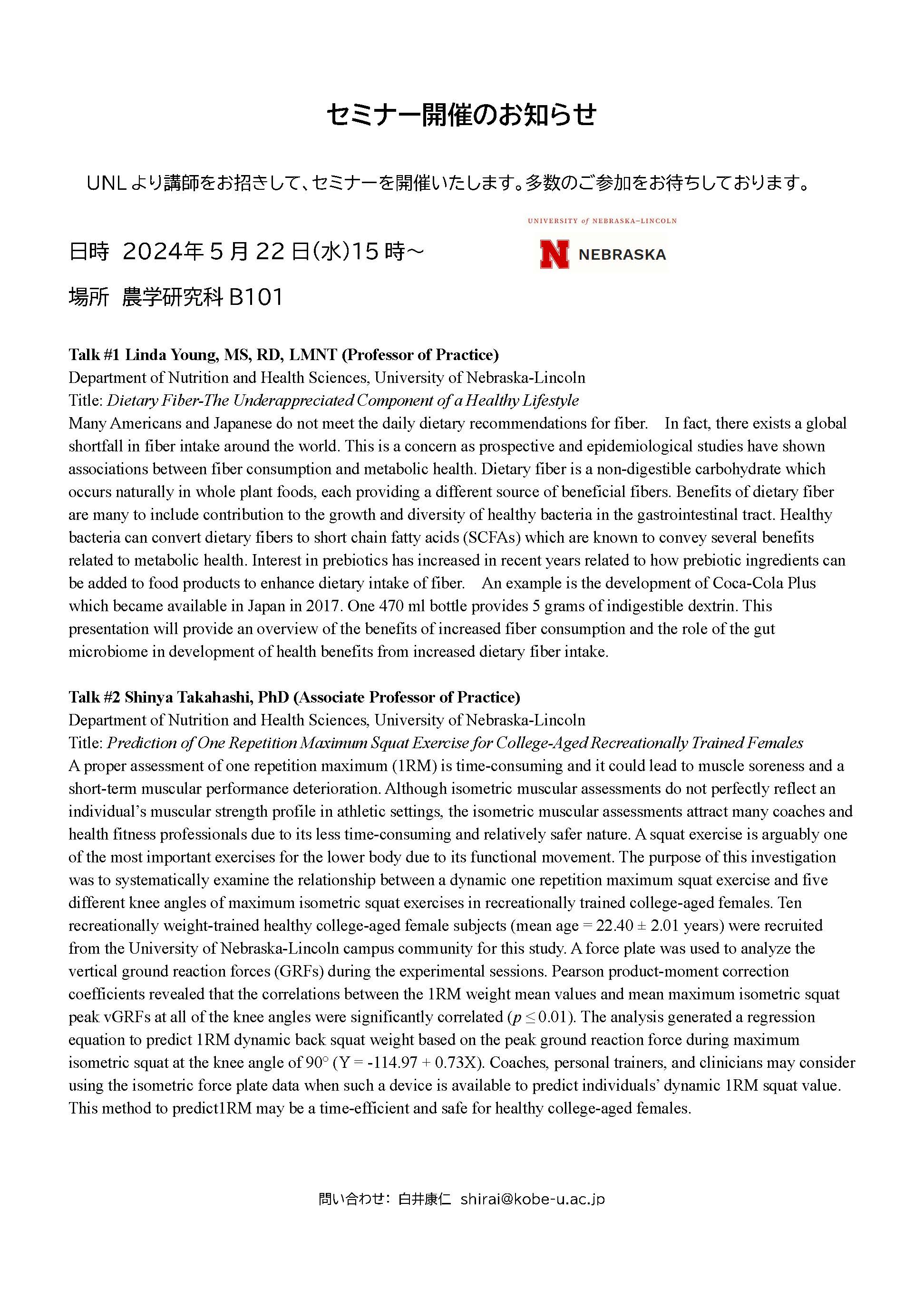 【5/22開催】世界展開力:ネブラスカ大学リンカーン校(UNL)の最新の研究を紹介します 2024-05-21 最終更新日時 : 2024-06-05 ad_seka 研究に興味のある学生さんや先生方のご来場をお待ちしています。